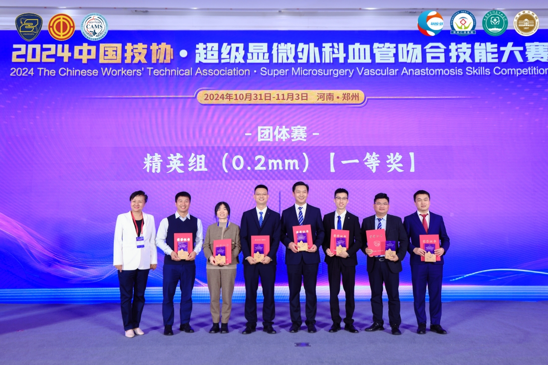 11月3日,為期四天的“2024中國技協(xié)·超級(jí)顯微外科血管吻合技能大賽”在鄭州圓滿落幕。廣州和平骨科醫(yī)院顯微外科醫(yī)生團(tuán)隊(duì)從眾多的參賽隊(duì)伍和參賽選手中脫穎而出,斬獲團(tuán)體賽一等獎(jiǎng),個(gè)人精英賽二等獎(jiǎng)、三等獎(jiǎng)。