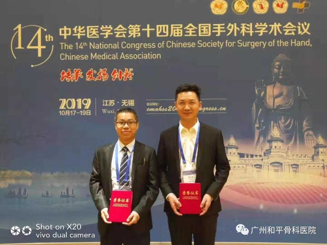 2019年10月19日,中華醫(yī)學(xué)會第十四屆全國手外科學(xué)術(shù)會議在美麗的太湖明珠——無錫圓滿閉幕,來自全國各地的兩千多名代表注冊參加了本次盛會。我院在黃東院長的帶領(lǐng)下,手外三區(qū)古欣慶主任、手外四區(qū)蘭榮玉主任、手外一區(qū)王小立醫(yī)生等一行7人應(yīng)邀參加會議并在各專題環(huán)節(jié)發(fā)表主題學(xué)術(shù)報告,更有我院醫(yī)師榮獲青年醫(yī)師論文競賽獎項。