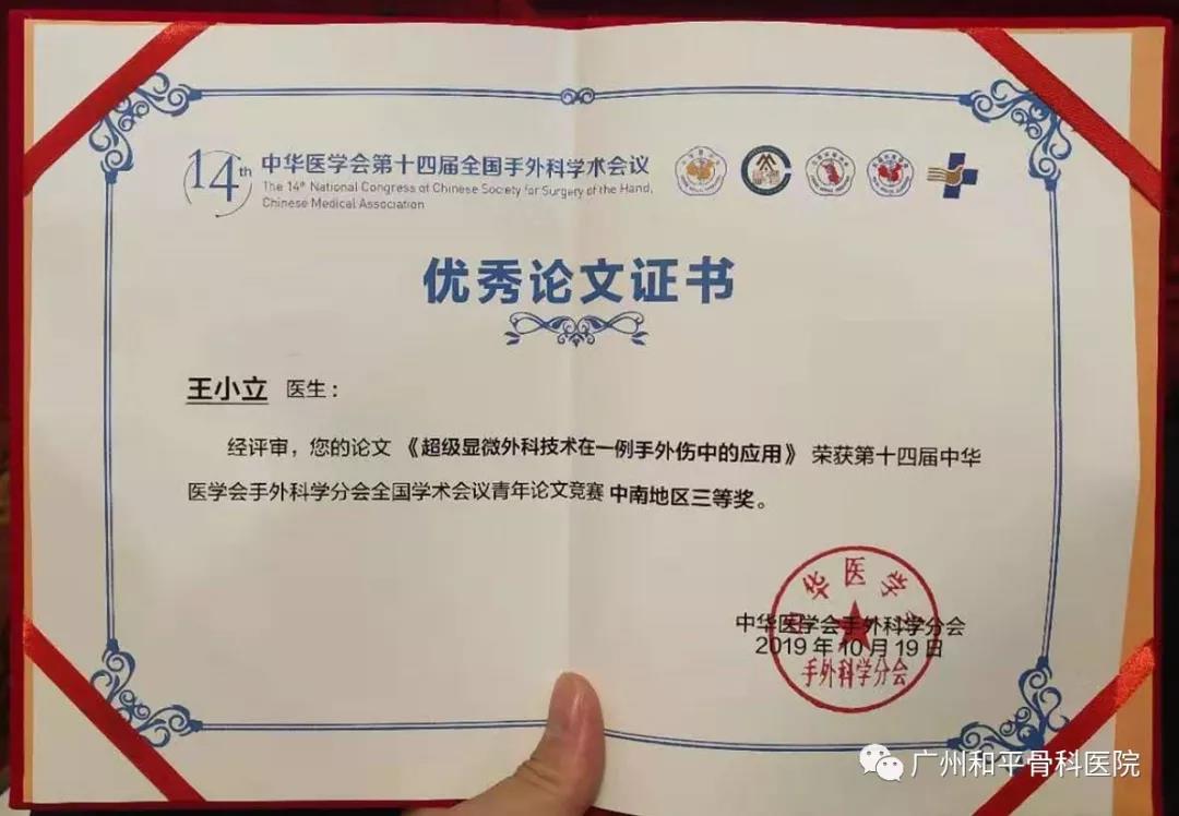 青年論文競賽是本次大會的重頭戲,為全國各地青年醫(yī)師提供了展示個人風(fēng)采及手外科專業(yè)技能的一流平臺。在剛剛結(jié)束的中華醫(yī)學(xué)會手外科學(xué)分會第十四屆全國學(xué)術(shù)大會的青年論文競賽中,經(jīng)過全國青年醫(yī)師的一番激烈角逐后,我院青年手外科醫(yī)師憑借其出色的表現(xiàn),取得了優(yōu)異成績,創(chuàng)傷顯微手外科三科科主任古欣慶《優(yōu)化組合皮瓣在足踝脫套損傷修復(fù)重建2例》獲中南地區(qū)二等獎,創(chuàng)傷顯微手外科一科王小立《超級顯微外科技術(shù)在一例手外傷中的應(yīng)用》獲中南地區(qū)三等獎,在此向他們表示熱烈的祝賀,這充分展現(xiàn)了我院在手足顯微修復(fù)與重建方面的優(yōu)良特色及一流技術(shù),獲得各地專家同行的一致認(rèn)可。