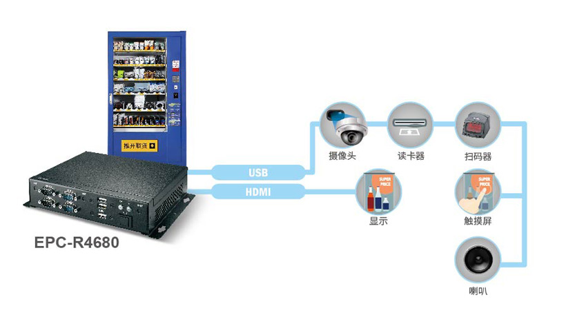 ▌▌研華方案研華提供了EPC-R4680精簡(jiǎn)型工控機(jī)作為方案,該方案搭載Rockchip ARM Cortex-A17 RK3288 Quad core高性能處理器,穩(wěn)定可靠。同時(shí)支持4K 顯示及 4Kx2K多格式HDMI視頻解碼。此外,配有M.2, Mini-PCIe 及支持WIFI的SIM卡卡槽、支持BT及4G連接,6 USB 2.0, 6UART, 1 GbE 及 8 GPIO的豐富接口,是KIOSK、販賣機(jī)及數(shù)字標(biāo)牌應(yīng)用的理想解決方案。同時(shí),1U的小尺寸,滿足客戶緊湊型需求。