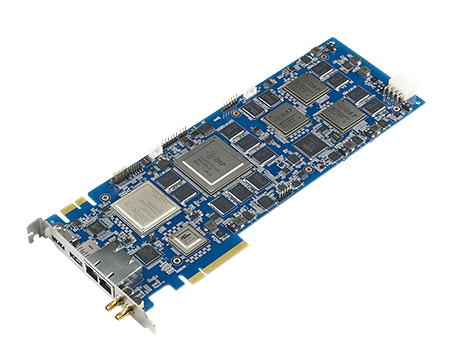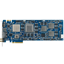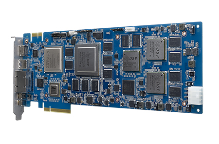 The DSP-8684 integrates Texas Instruments one 66AK2H12 and three TMS320C6678 multicore processors based on KeyStone architecture, and a Xilinx Artix-7 XC7A200T FPGA device to provide the highest computing performance and flexibility in a full-length PCIe form factor for supporting a wide range of applications. The built-in 32 TI C66x DSP cores and 4 ARM Cortex-A15 cores offer unrivalled processing capabilities for data and control plane processing while the reprogrammable Xilinx Artix-7 FPGA device adds flexibility to the design by allowing the inclusion of customized hardware functions. Video acquisition is achieved through SDI-3G input/output and HDMI input ports facilitating connectivity to external devices for video processing. A unique standalone operation mode enables the DSP-8684 to be operated as an autonomous embedded system without the involvement of an additional host processor card or motherboard, allowing highly cost effective deployment. An innovative and unique, dedicated board-to-board interconnect offers the possibility of synchronizing multiple DSP-8684 cards over dedicated high-speed serial interfaces. All these unprecedented features make the DSP-8684 ideal for new video standards (such as HEVC/H.265) in broadcasting, machine vision, medical imaging, cloud computing, and mission critical applications among others.